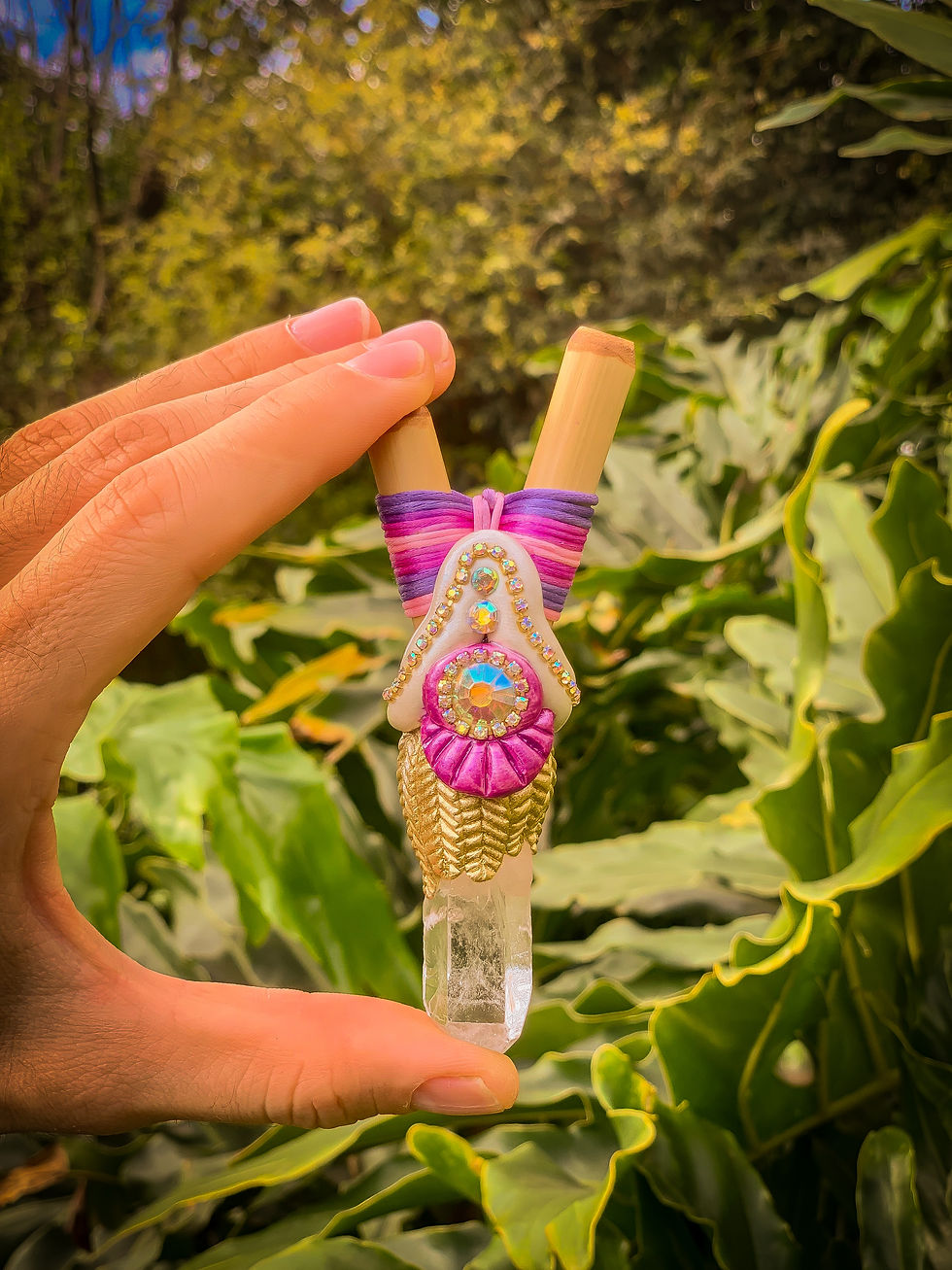 Cada peça é confeccionada artesanalmente com intenção, respeito e consciência, tornando-se um elo entre o sagrado, a arte e o espírito.